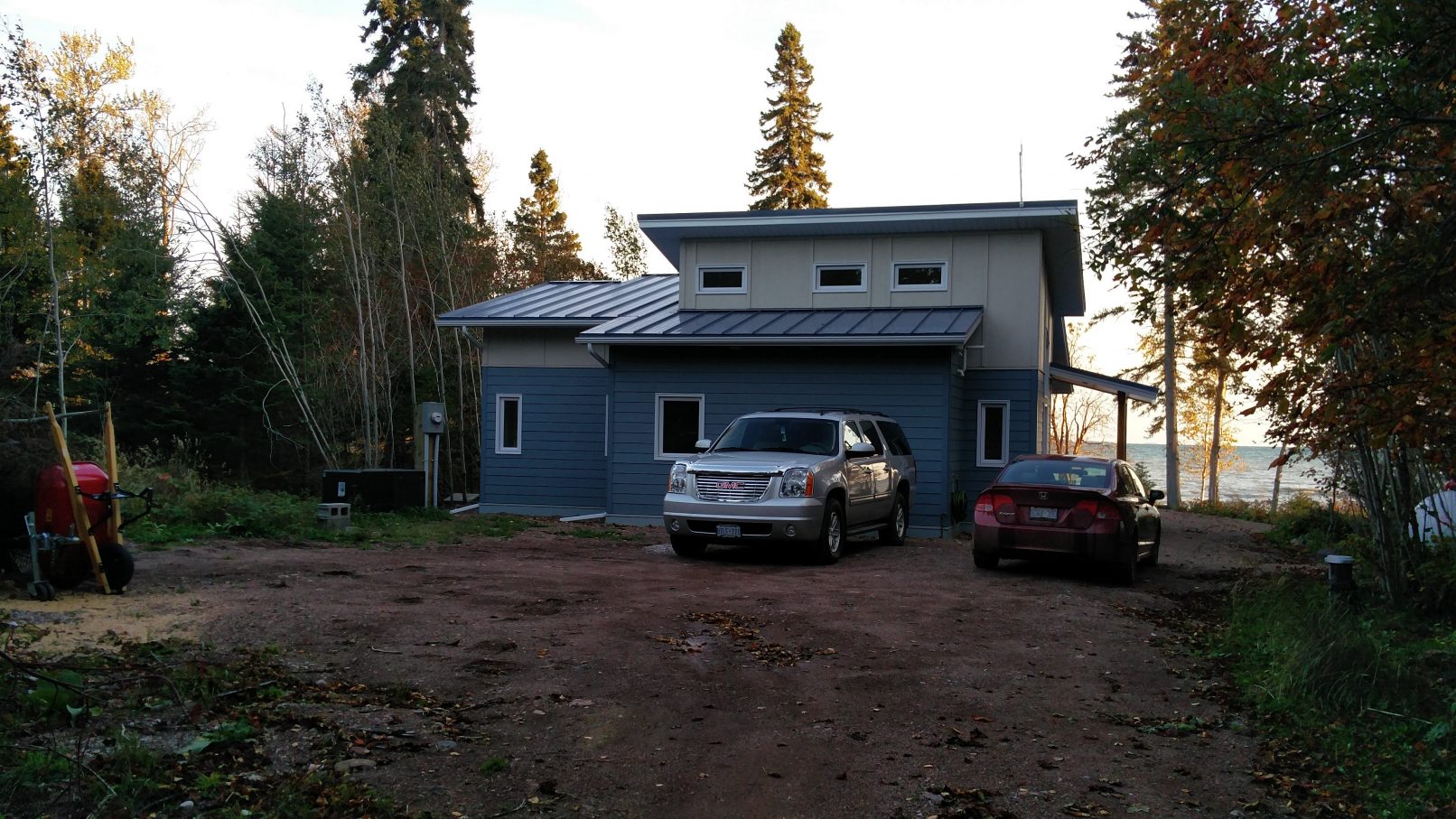 This lakefront home provides a comfortable and cozy accommodation off Lake Superior for the home owners. Several single-pitched roofs provide the main form of the dwelling, creating clerestory windows in three key areas that fill the homes interior with natural light.